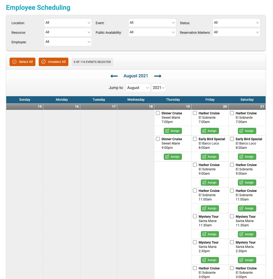 - Click the green "Batch Update Selected Events" button and assign any individual employees or employee teams to your events