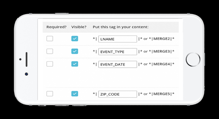 We're now passing the customer's event type, event date and zip code to MailChimp, and you can configure MailChimp to capture that information with a couple of clicks.