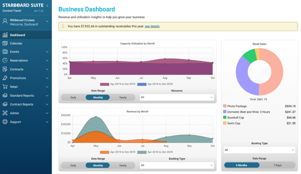 It has real-time charts and performance graphs to give you a high-level view of how your business is doing.